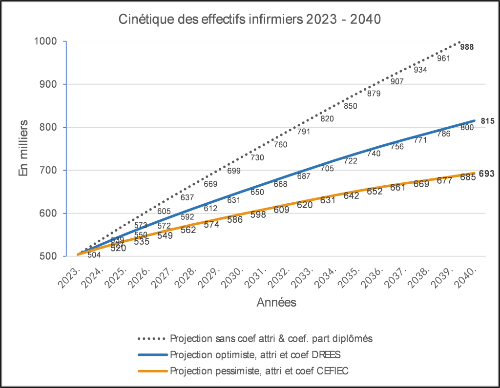 Selon les scénarii, la population infirmière devrait atteindre 693 000 ou 815 000 professionnels en 2040