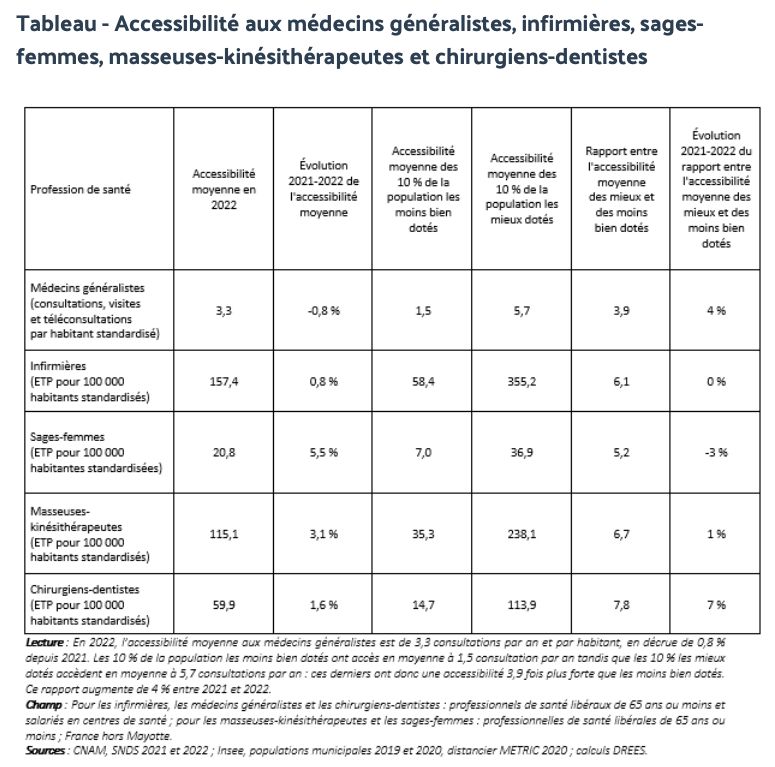 Accessibilité aux soins de premier recours : augmentation des inégalités d’accessibilité aux chirurgiens-dentistes et aux médecins généralistes en 2022