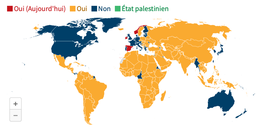 Reconnaissance d’un État palestinien, selon les États membres de l’ONU.
