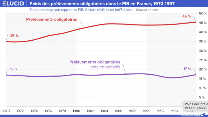 La propagande néolibérale nous rabâche souvent le même pseudo-argument sur nombre de plateaux télé : « C’est un scandale : la France a les prélèvements obligatoires les plus élevés d’Europe ! Cela asphyxie les forces vives du pays ! ». Pourtant, la réalité économique est tout autre. D’une part, le taux de prélèvements obligatoires n’a jamais baissé au cours des 50 dernières années, en dépit des dures politiques néolibérales menées. D’autre part, les pays avec un taux de prélèvements deux fois plus faible ne connaissent aucun nirvana économique – et s’en sortent même parfois moins bien que la France. Le problème est donc (volontairement) mal posé, ce qui empêche le grand public de bien comprendre les enjeux, mais aussi de prendre de bonnes décisions. Comment les néolibéraux travestissent-ils la réalité du fonctionnement du secteur public pour fabriquer le consentement à la destruction des services publics et à l’augmentation des inégalités au bénéfice des plus riches ? Explications.
