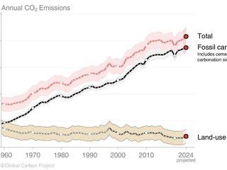 Évolution des émissions annuelles de CO2 de 1960 à 2024.© Friedlingstein et al. 2024
