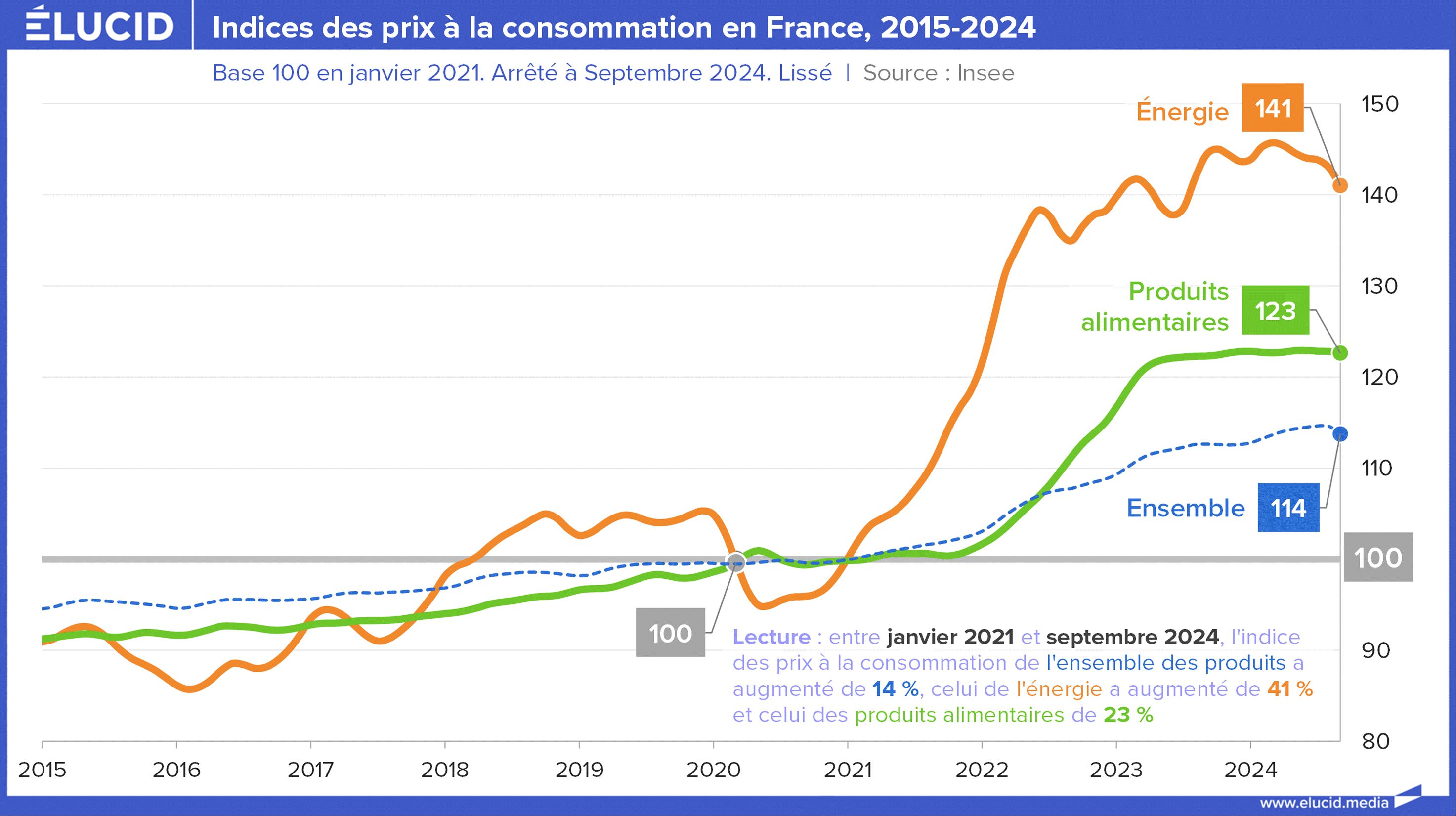 Les ressentis des Français résonnent avec la forte inflation des dernières années. L’augmentation des prix, en particulier sur les produits alimentaires et énergétiques, s’accompagne de la dégradation du pouvoir d’achat du travail et des salaires, un phénomène accentué dans la période récente.