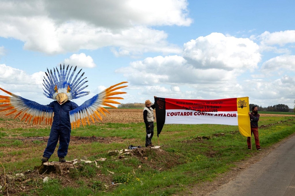 L’outarde canepetière était d’ailleurs devenue l’emblème du mouvement de contestation. Elle était présente à chaque rassemblement sous la forme de gigantesques mascottes portées dans les cortèges.