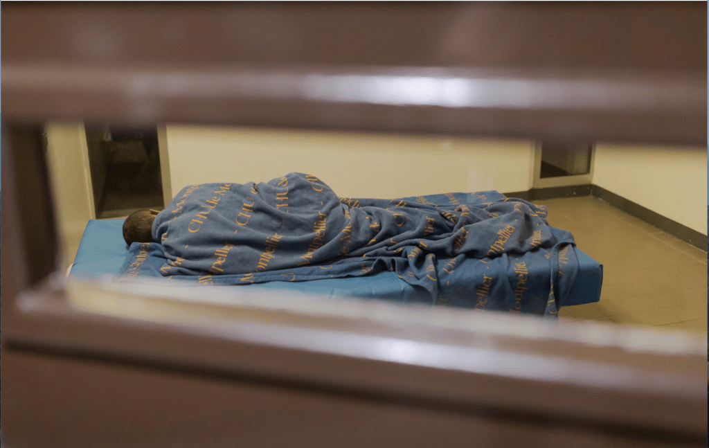 Des pyjamas bleus obligatoires pour les patients. Comme des uniformes. Pas de téléphone portable. Pas de télévision dans les chambres. Des horaires à respecter pour le lever, le repas, les pauses et l’extinction des lumières. Un minimum d’affaires personnelles. Des chambres interdites d’accès une partie de la journée et fouillées par le personnel tous les soirs. Le recours régulier à l’isolement. C’est un soignant qui lâche le morceau : « Certains détenus préfèrent repartir en détention plutôt que de rester ici. » Ici ? L’unité de soins intensifs psychiatriques (USIP) de Montpellier. Un bâtiment sécurisé avec des murs qui dépassent 6 mètres. Quinze patients au maximum. Quatre chambres d’isolement occupées presque en permanence.