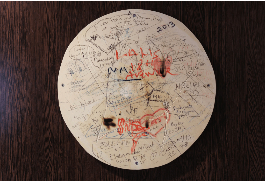 Des écrits de patients dans l’unité fermée de l’hôpital François-Quesnay, à Mantes-la-Jolie (Yvelines), le 6 novembre 2024. LAURENCE GEAI/MYOP POUR « LE MONDE »
