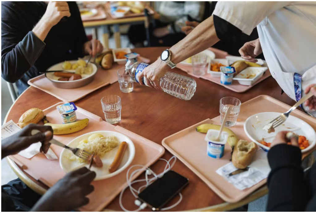 Repas dans l’unité d’hospitalisation Nicolas-de-Staël de l’hôpital François-Quesnay, à Mantes-la-Jolie (Yvelines), le 6 novembre 2024. LAURENCE GEAI/MYOP POUR « LE MONDE »
