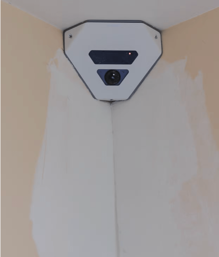 Une caméra installée dans une chambre d’isolement de l’unité d’hospitalisation Nicolas-de-Staël de l’hôpital François-Quesnay, à Mantes-la-Jolie (Yvelines), le 6 novembre 2024. LAURENCE GEAI/MYOP POUR « LE MONDE »