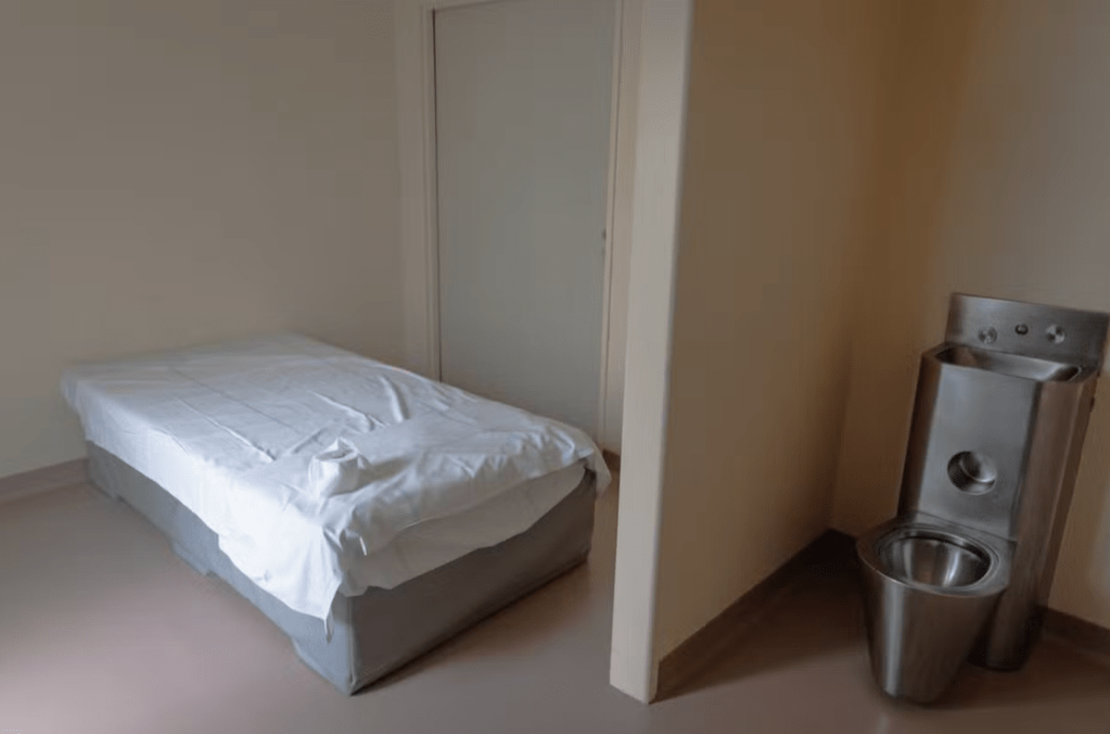Un patient placé en isolement à l’unité de soins intensifs psychiatriques du centre hospitalier universitaire de Montpellier, le 26 novembre 2024. LAURENCE GEAI/MYOP POUR « LE MONDE »