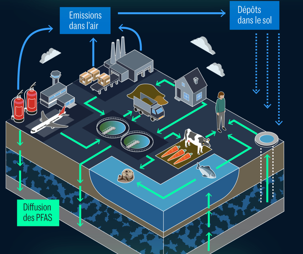 Pour comprendre l’ampleur de ces besoins, il faut remonter le cycle de contamination des PFAS jusqu’à sa source.