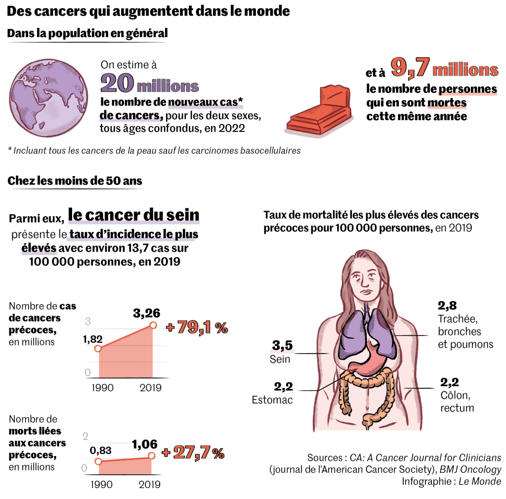 Publié 03/03/2025 à 17h23, modifié à 15h30 https://www.lemonde.fr/sciences/article/2025/03/03/les-chiffres-preoccupants-des-cancers-chez-les-moins-de-50-ans_6575533_1650684.html