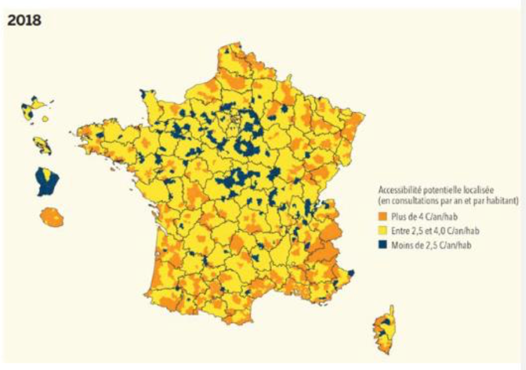 Si on étudie l’accessibilité potentielle localisée en consultation par an et par habitant on réalise la différence qui existe entres tous les territoires avec des différences qui font plus que doubler. Ce la prouve que le raisonnement par région, par département est artificiel et c’est pour cela qu’il faut réguler les installations de généralistes de de spécialistes en fonction des données locales.