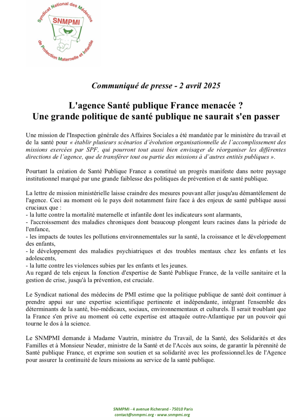 https://toute-la.veille-acteurs-sante.fr/232137/lagence-sante-publique-france-menacee-communique/