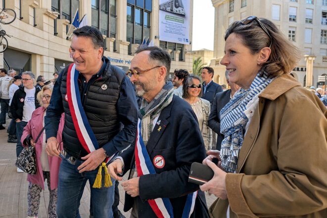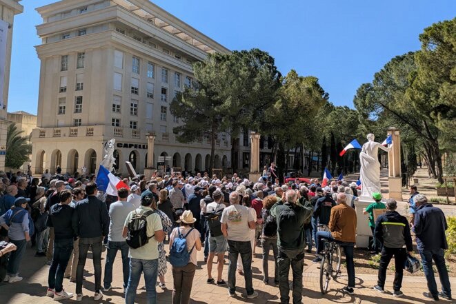 Au micro, devant les personnes rassemblées à Montpellier, Laurent Jaoul insiste sur la lutte « sans couleur politique » menée contre cette loi, mais force est de constater que la droite et l’extrême droite sont très représentées, suscitant la gêne de certain·es. « Je ne pensais pas que ce serait autant de droite… », souffle une manifestante après des « Frexit ! Frexit ! » lancés dans la foule.