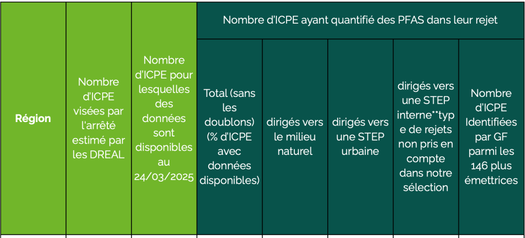 Le rapport s’appuie sur l’exploitation des premières données rendues publiques à partir d’avril 2024 collectées par les Direction régionale de l’Environnement, de l’Aménagement et du Logement (DREAL) et actualisées à la date du 25 mars 2025. Grâce à une analyse approfondie des résultats fournis par près de 2700 sites industriels, nous avons pu dresser un état des lieux des émissions industrielles de PFAS en France et établir une cartographie des usines les plus émettrices.