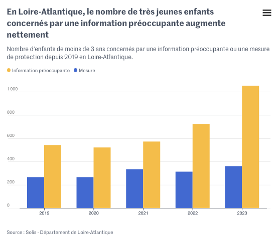 Ainsi, sur notre échantillon, le nombre total de mineurs et de jeunes majeurs suivis ou placés augmente de plus de 2 % en moyenne par rapport à 2023, ce qui cache des hausses plus marquées, comme en Gironde (+ 7 %, soit 833 enfants en plus), tandis que le taux de natalité continue de baisser. La hausse des placements d’enfants de plus en plus jeunes force aussi l’attention, comme la hausse du nombre de bébés accueillis en pouponnières : par exemple dans le Puy-de-Dôme, où, en 2024, celle prévue pour 38 bébés a dû en héberger jusqu’à 60.