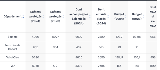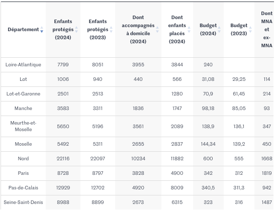 Un premier échantillon nous est parvenu à ce jour, qui couvre 25 départements et inclut des collectivités « témoins » ou emblématiques comme le Nord, le Pas-de-Calais, la Seine-Saint-Denis, Paris ou les Bouches-du-Rhône. Leur analyse étaye le triple constat sur lequel alertent tous les rapports : jamais les enfants protégés n’ont été aussi nombreux ; jamais il n’y a eu autant d’enfants en bas âge confiés ; surtout, la situation s’est encore aggravée en 2024, y compris en milieu rural dans des départements longtemps épargnés par la précarité.