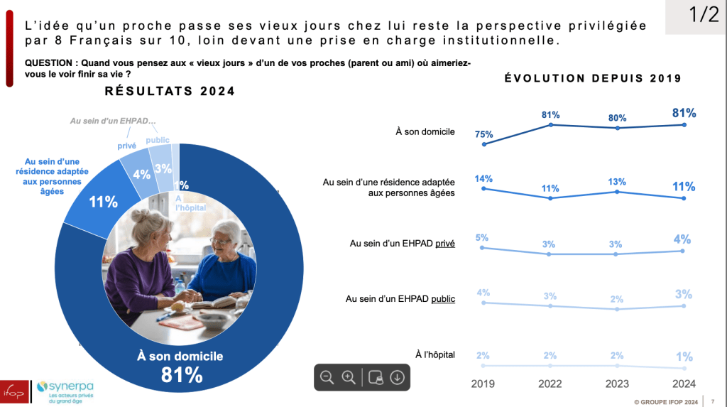 - L’idée qu’un proche passe ses vieux jours chez lui reste la perspective privilégiée par 8 Français sur 10, loin devant une prise en charge institutionnelle (81%).
