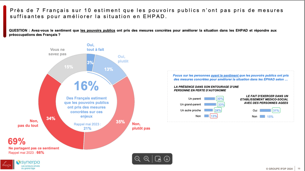 - Près de 7 Français sur 10 estiment que les pouvoirs publics n’ont pas pris de mesures suffisantes pour améliorer la situation en EHPAD (69%).