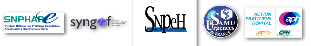 *Le Syndicat national des praticiens hospitaliers anesthésistes-réanimateurs élargi aux autres spécialités (SNPHARE), le Syndicat national des gynécologues obstétriciens en France (SYNGOF), le Syndicat national des pédiatres en établissements hospitaliers (SNPeH), Samu-Urgences de France (SudF), qui sont tous membres de l’union syndicale Avenir Hospitalier/APH.