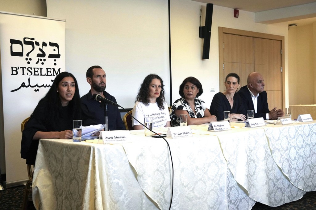 Le PHRI s’exprime lors d’une conférence de presse avec B’Tselem, à l’occasion de la publication d’un rapport qualifiant la guerre à Gaza de génocide, à Jérusalem, le 28 juillet 2025. © Photo Maya Alleruzzo / Ap / Sipa