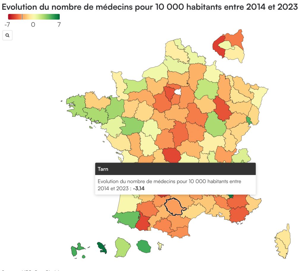 3/4 des départements ont perdu des médecins en 10 ans, les inégalités d’accès aux soins ne font que s’aggraver