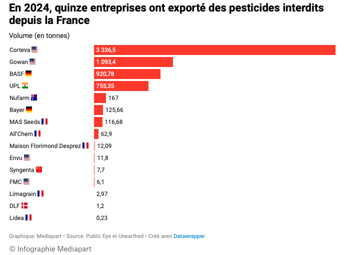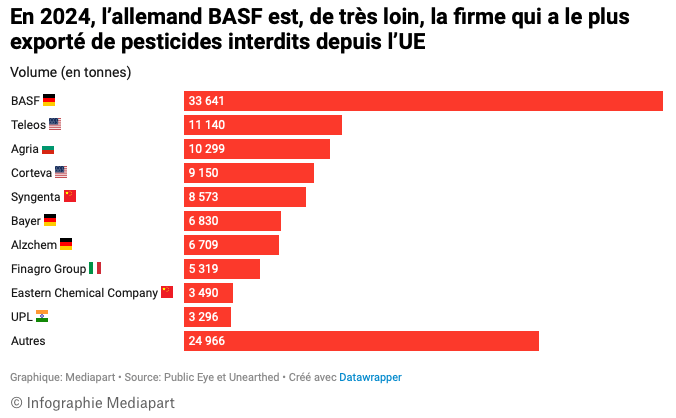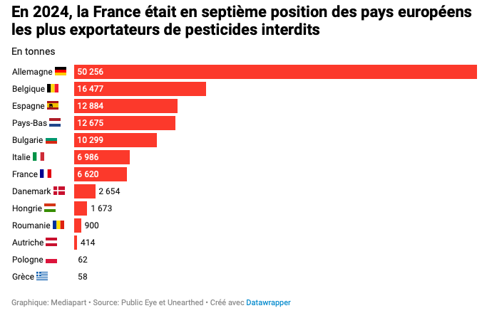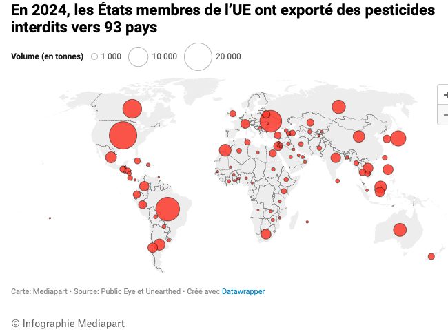 23 septembre 2025 à 07h14 https://www.mediapart.fr/journal/ecologie/230925/malgre-ses-engagements-l-europe-exporte-toujours-plus-de-pesticides-interdits