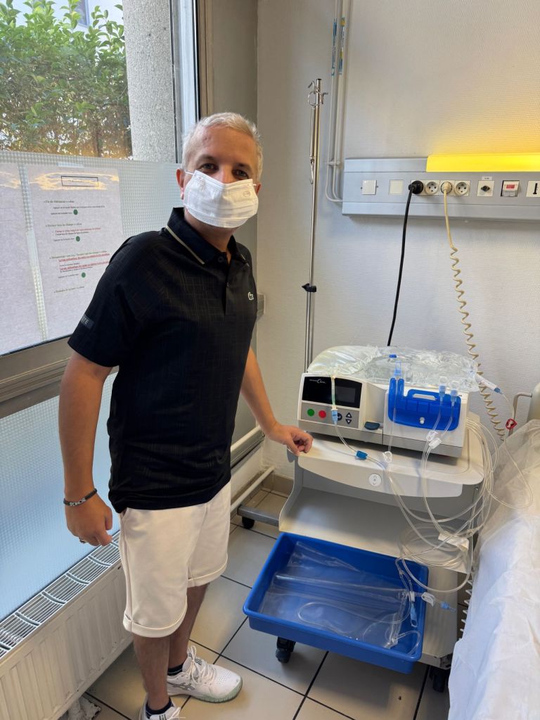Une nouvelle qui va m’impacter oui, mais également des centaines de patients suivis comme moi en dialyse péritonéale. J’ai en effet fini de brancher seul la machine qui me permet de vivre en attente d’une greffe. C’était une de mes journées de formation car je vais devoir répéter ces branchements presque tous les jours. Jusque là on avait le soutient d’infirmiers libéraux qui pratiquaient des actes de soins à domicile et la CPAM payait pour ces actes: pose de machine, récolte et report de données sur un carnet quotidien, pansement si besoin, injection etc ... Le problème c’est que la CPAM des bouches du Rhône a fait savoir que ces infirmiers ne seraient plus payés à l’avenir. Ce qui remet tout un système en cause. Cela sera même bientôt généralisé à toute la France…