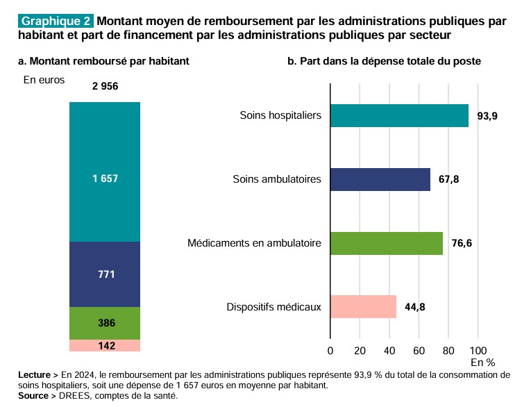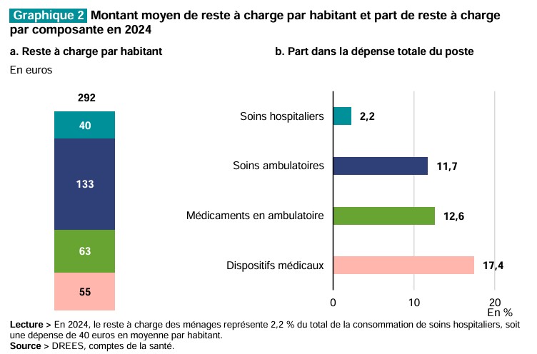 En 2023, le reste à charge s’élève en moyenne à 274 euros par habitant