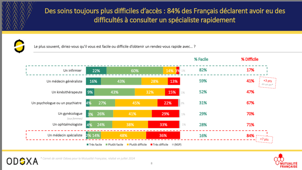 PUBLIÉ LE 24/09/2025 https://www.lequotidiendumedecin.fr/sante-societe/politique-de-sante/huit-francais-sur-dix-rapportent-des-difficultes-dacces-aux-medecins-specialistes-en-2025