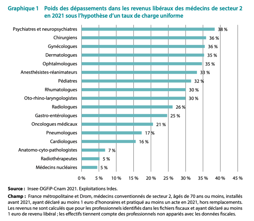 Pour les professionnels, les dépassements d’honoraires apportent des compléments de revenus importants, mais génèrent des disparités de revenus avec les médecins de secteur 1.