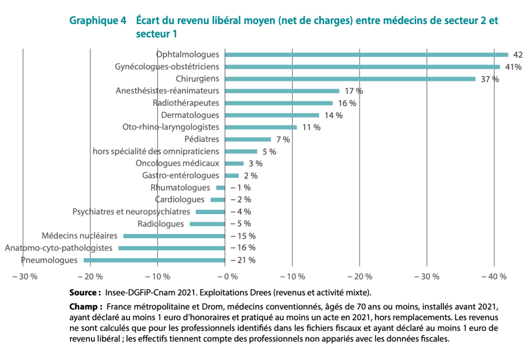 Pour certaines spécialités, ces effets l’emportent même, de telle sorte que les médecins de secteur 2 ont alors des revenus plus faibles que leurs confrères de secteur 1.