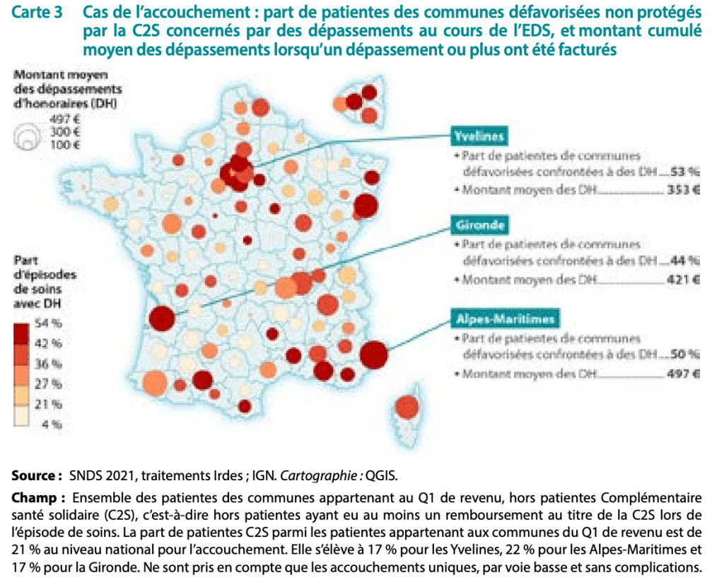 Des territoires où les patients défavorisés, non protégés par la C2S, sont néanmoins confrontés à des dépassements fréquents et élevés