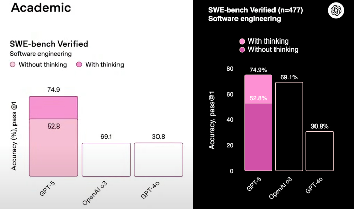À gauche, l’erreur flagrante de mise à l’échelle donne l’impression d’une domination totale de GPT-5, alors qu’en réalité, il n’est que légèrement supérieur à OpenAI o3 – @OpenAI