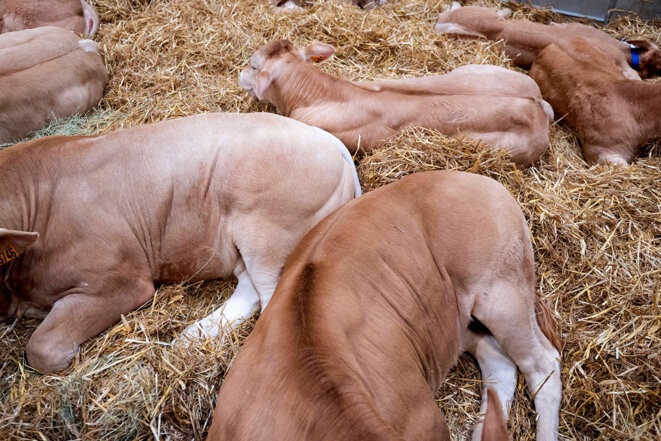 Des mveaux dans un enclos lors du 60e Salon international de l’agriculture de 2024. © Photom Jeanne Accorsini / Sipa