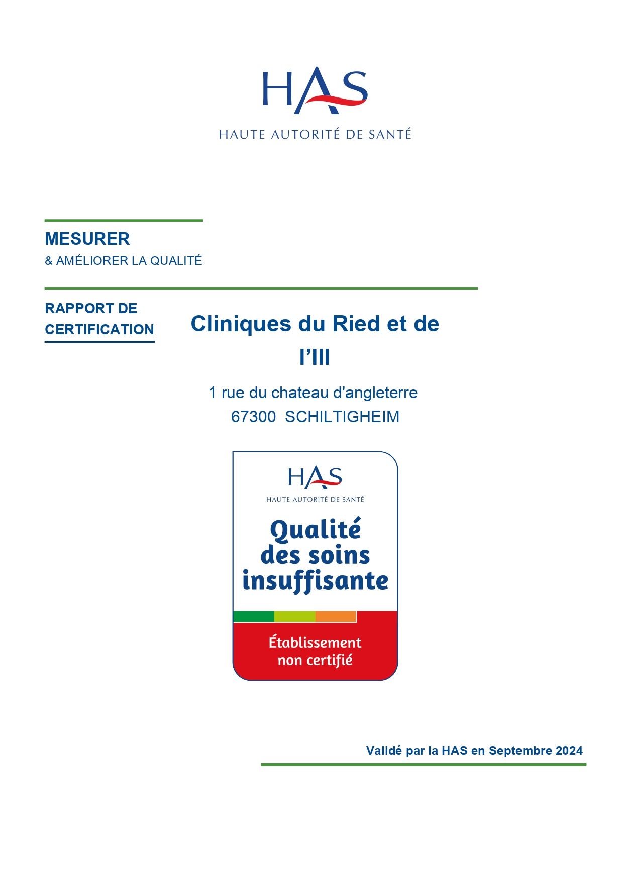 En 2024, la Haute autorité de santé (HAS) a évalué ces deux cliniques. Son verdict, rendu en en septembre 2024, est cinglant : la qualité des soins y est jugée « insuffisante » et les deux établissements en sont ressortis « non certifiés ». Pour se faire une idée, seuls 4% des établissements de santé en France échouent à cette certification. Pas exactement un score à mettre en avant.