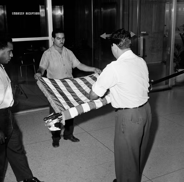 La méthode qui avait fonctionné au Guatemala en 1954 se solde par un fiasco à Cuba. En 1959, Washington lâche le dictateur Batista – trop corrompu – face aux insurgés dirigés, entre autres, par Fidel Castro et Ernesto « Che » Guevara. Un gouvernement socialiste s’installe, qui décrète la réforme agraire et nationalise terres et entreprises, au grand dam des compagnies américaines propriétaires de la plupart des terres arables, des mines et des raffineries. L’intervention des Etats-Unis en 1961 – avec près de 1 400 exilés cubains, recrutés et entraînés par la CIA, débarquant dans la baie des Cochons – tourne au désastre.