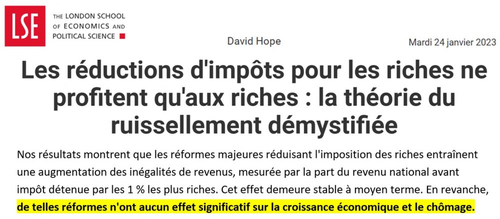 À ce titre, une étude majeure de la London School of Economics, portant sur 18 pays de l’OCDE sur une période de 50 ans, a porté un coup fatal à la rhétorique de l’allègement fiscal. En analysant les effets des baisses d’impôts massives accordées aux plus riches, sa conclusion est dévastatrice pour la doxa libérale : ces réformes ont considérablement accru les revenus des 1 % les plus riches, mais n’ont eu « aucun effet significatif sur la croissance économique ou la baisse du chômage ». Le fameux « ruissellement » est donc un mythe, une fable commode. L’argent libéré au sommet de la pyramide ne ruisselle pas vers l’économie réelle ; il a au contraire une fâcheuse tendance à s’accumuler dans des bulles financières ou immobilières stériles, plutôt que de financer l’appareil productif.