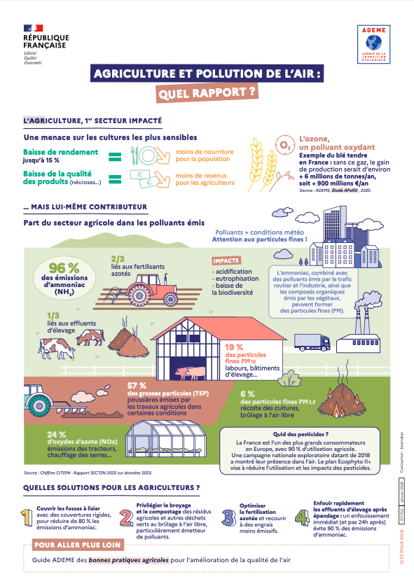 Pour aller plus loin • Guide ADEME des « bonnes pratiques agricoles pour l’amélioration de la qualité de l’air. » https://librairie.ademe.fr/air/8885-guide-des-bonnes-pratiques-agricoles-pour-l-amelioration-de-la-qualite-de-l-air.html
