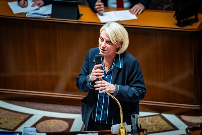 Stéphanie Rist, ministre de la santé, à l’Assemblée nationale, le 19 février 2026. © Photo Xose Bouzas / Hans Lucas via AFP