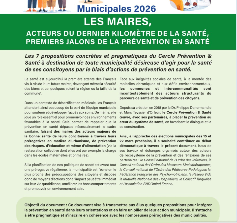 Le Cercle Prévention & Santé s’adresse aux (futurs) maires et publie aujourd’hui 7 propositions pragmatiques pour intégrer pleinement la prévention en santé dans les orientations municipales.