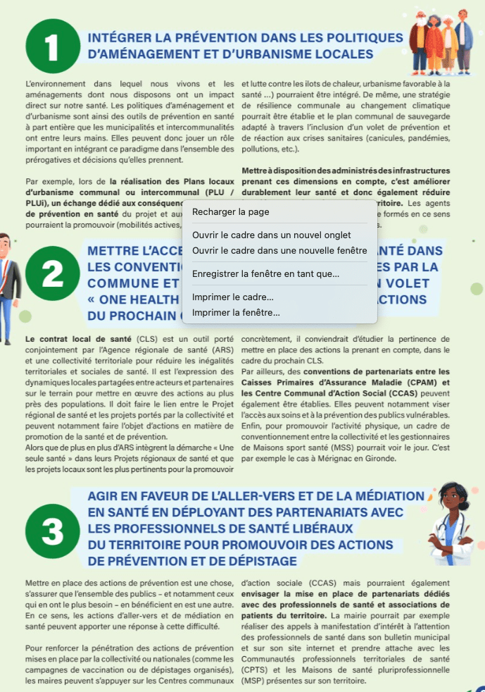 Dans ce contexte, le Cercle Prévention & Santé, think & do tank, dont l’objectif est de faire de la prévention l’un des axes structurants des politiques de santé publique, a souhaité contribuer au débat démocratique à travers 7 propositions concrètes et pragmatiques à destination de toute municipalité désireuse d’agir pour la santé de ses concitoyens par le biais d’actions de prévention en santé.