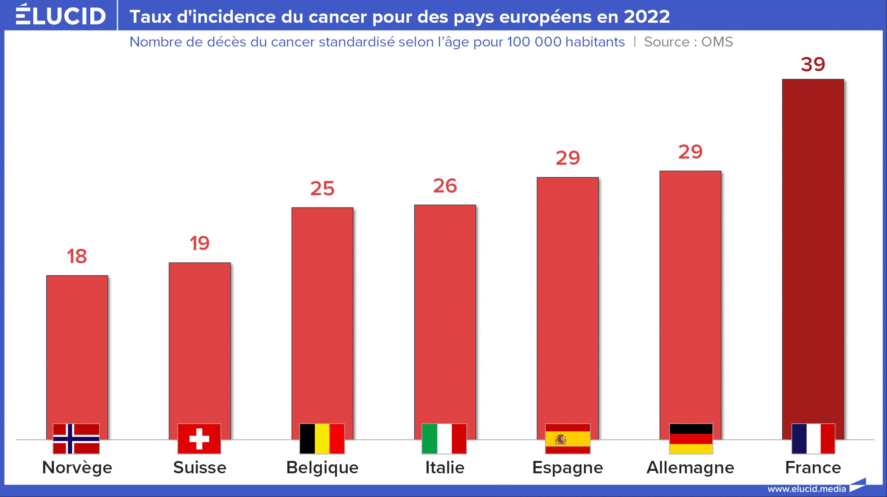(4) France : 39,3 décès pour 100 000 hommes de 0 à 60 ans, tous cancers confondus, versus 19,3 en Suisse et 17,9 en Norvège (données standardisées, Cancer Today)