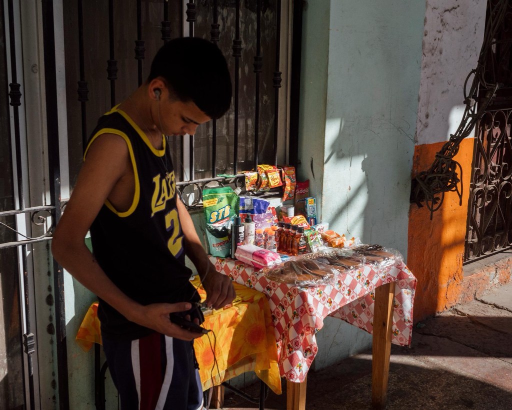 Ceux qui restent vivotent. Les petits vendeurs proposent des bottes d’oignons, quelques légumes, des fruits, tous chers. Ici, une vieille femme tente de monnayer une télécommande de télé jaunie. Là, on propose quatre épis de maïs sur un rebord de fenêtre. Une jeune femme, avec deux enfants accrochés à ses jambes, entrouvre sa porte derrière laquelle trône, dans l’unique pièce familiale, une antique machine Singer à pédales avec laquelle elle a fabriqué quelques petites maniques avec du tissu de récupération. Elle les vend pour une bouchée de pain : un quart de dollar (20 centimes d’euro) les deux. Rue San-Rafael, un type passe, hors de lui, qui en est à son troisième magasin, à la recherche, simplement, de sel, qu’il ne trouve nulle part. Personne ne s’en étonne. On ne peut plus faire le compte des pénuries. Trouver du paracétamol, par exemple, relève de l’impossible.