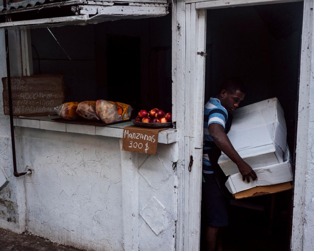 La rue San-Rafael est en émoi. Le magasin d’Etat est déjà si déprimant. Que voulaient donc les voleurs ? Renseignement pris, ils ont emporté quelques bouteilles d’huile. Tout s’explique. Quelques jours plus tard, ils seront retrouvés et arrêtés. Ils ont sans doute été identifiés par l’une des nombreuses caméras installées sur les murs, pourtant en si mauvais état. Ils ont joué de malchance : la nuit de leur forfait, par extraordinaire, il y avait de l’électricité. Tout cela déprime un peu plus Alexandra (comme tous les prénoms, celui-ci a été changé). Elle aimerait sortir, boire des bières, danser. Mais tout est hors de portée, désormais, même la compagnie. « Il n’y a plus personne, tout le monde est parti [à l’étranger]. Et les gens continuent de s’en aller », se plaint-elle.