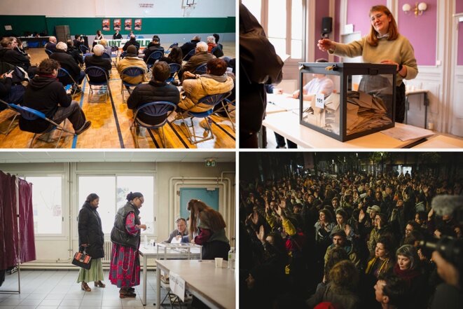 La campagne et le vote pour les élections municipales 2026 à Besançon, Toulouse, Saint-Avold et Marseille. © Photos Antoine Mermet, Vincent Nguyen, Mathilde Cybulski et Claire Gaby pour Mediapart