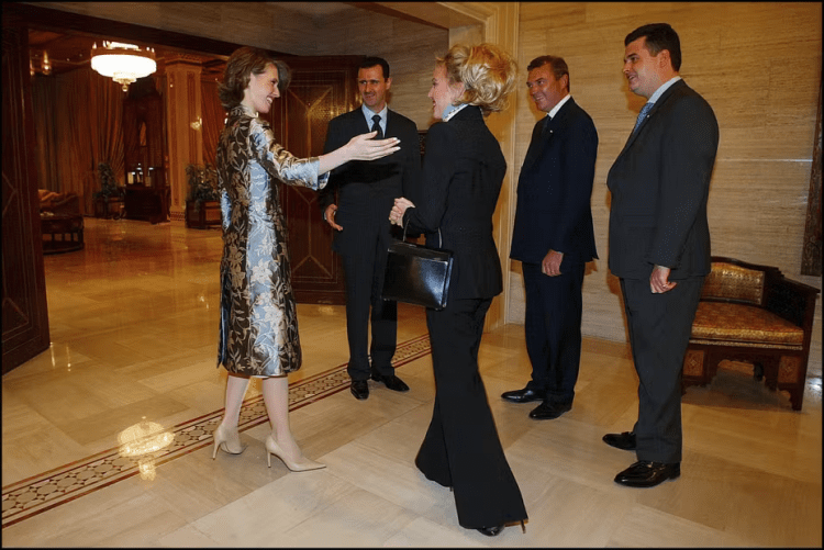 Tout sourire, Charles et Camilla de Bourbon des Deux-Siciles – tailleur strict et foulard bleu roi – rendent ainsi visite au dictateur syrien Bachar Al-Assad et à son épouse au palais présidentiel à Damas, en mars 2004. Le couple Bourbon partage avec le couple Al-Assad un dîner aux chandelles. Le prétendant italien se voit à cette occasion décoré de la grand-croix de l’ordre du Mérite civil par Bachar Al-Assad, mention discrètement effacée de sa page Wikipédia francophone, tout comme sa décoration de l’ordre de l’unification du Yémen. En 2018, la jeune Maria Carolina et sa famille sont également invitées par Donald Trump, dans sa villa de Mar-a-Lago, en Floride. Et la famille félicite publiquement leur « ami » américain, le 6 novembre 2024, pour sa réélection à la présidence des Etats-Unis.