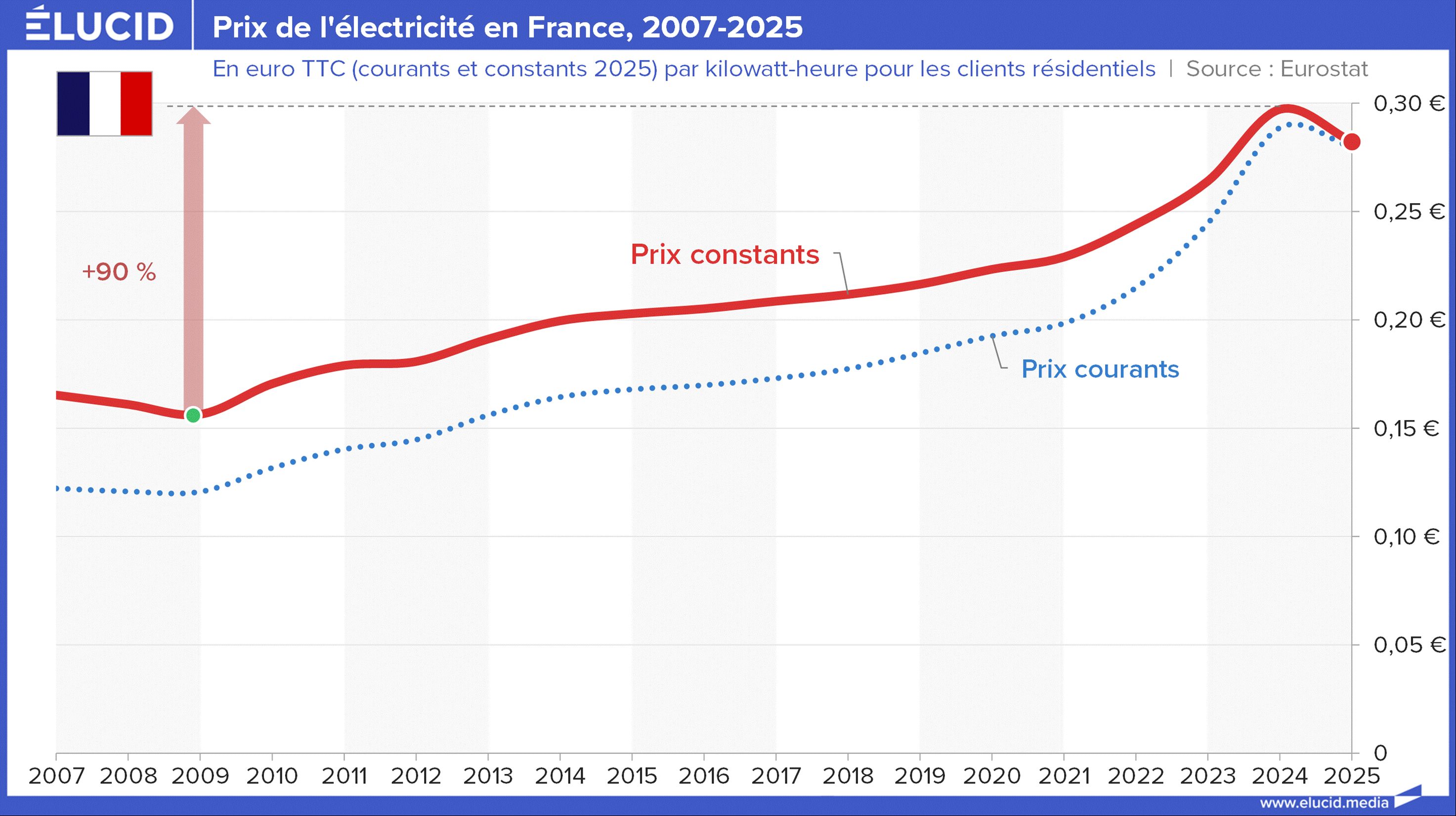 Le prix réel de l’électricité a doublé depuis 2009