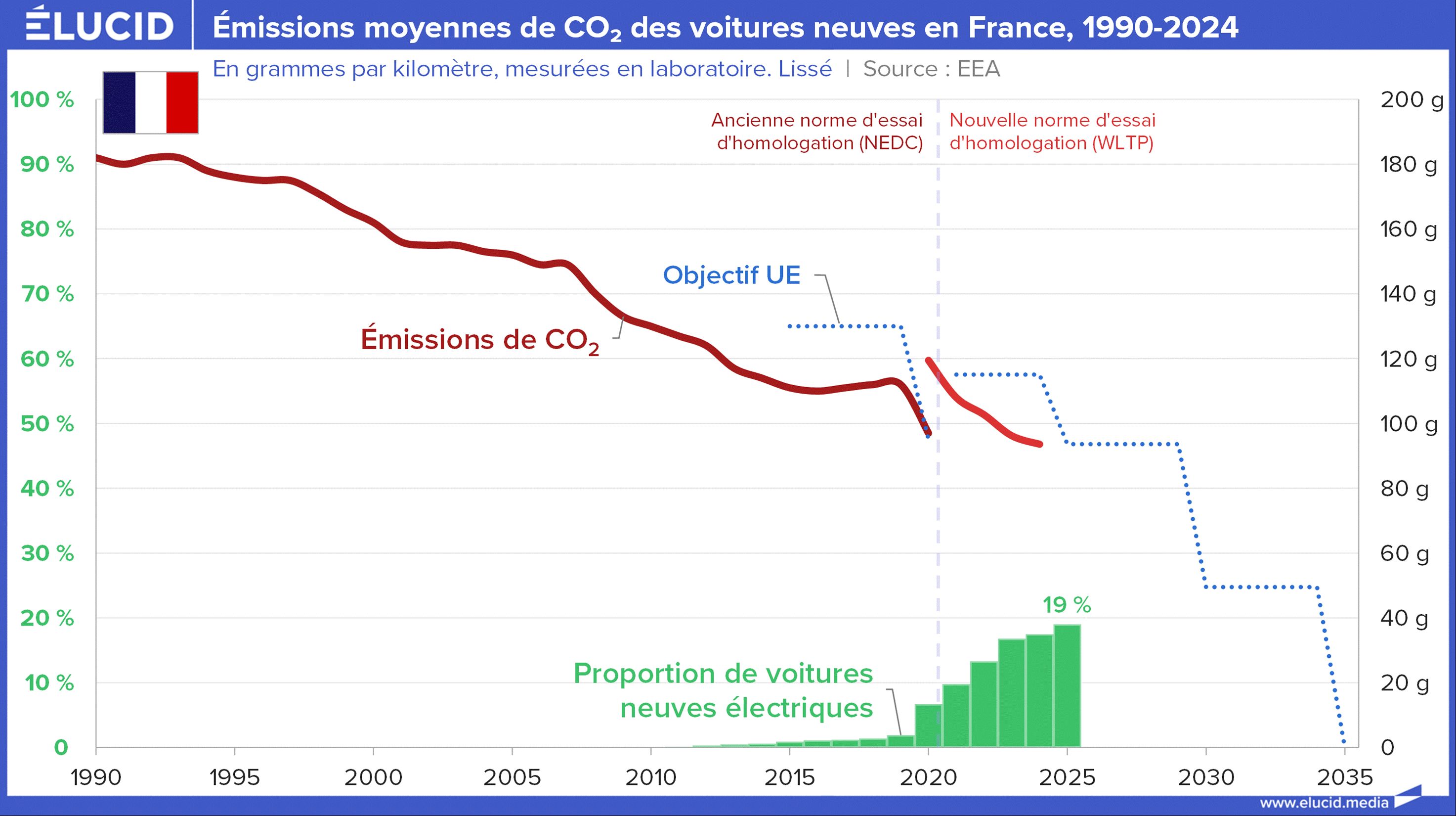 C’est en 2009 que le premier règlement européen a imposé une limite aux émissions moyennes de CO₂ de l’ensemble du parc des voitures neuves vendues chaque année, mesurées à l’échappement. Entré progressivement en vigueur en 2012, il a fixé une première limite à 130 g de CO₂/km, abaissée à 95 g en 2020. Ces objectifs ont été complétés par un règlement de 2019, fixant une baisse de -15 % dès 2025 et de -40 % environ en 2030.