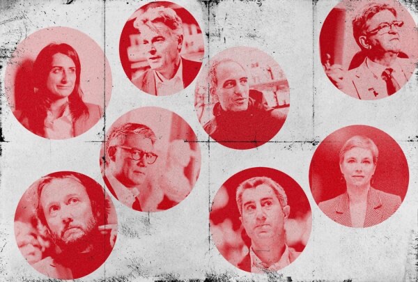 Marine Tondelier, Fabien Roussel, Raphaël Glucksmann, Jean-Luc Mélenchon, Boris Vallaud, Olivier Faure, François Ruffin et Clémentine Autain. © Photo illustration Sébastien Calvet / Mediapart